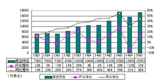 圖為攜程歷年來的酒店預(yù)訂營(yíng)收以及環(huán)比、同比增長(zhǎng)數(shù)。根據(jù)攜程的財(cái)報(bào)顯示,攜程自2012年至今,酒店?duì)I收的占比為39%——44%,系攜程旗下最重要的業(yè)務(wù)。藝龍的狀況和攜程類似,酒店同樣是其最大的業(yè)務(wù)線。藝龍的內(nèi)部郵件也顯示,“我們期待在新股東的支持下,藝龍將能夠利用攜程的上風(fēng)資源,使藝龍更加專注在住宿預(yù)定服務(wù)上。”即雙方合作的重點(diǎn)也是在酒店業(yè)務(wù)上。 但攜程的酒店+藝龍的酒店是﹤2的,為何要這么說呢?和攜程在酒店業(yè)務(wù)上的不亂性不同,藝龍的酒店業(yè)務(wù)固然是其自身最重要的業(yè)務(wù)線,但藝龍總體不容樂觀啊。