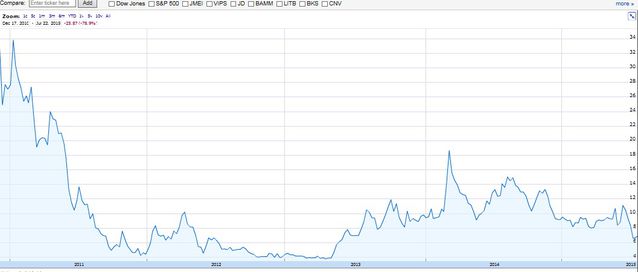 從1992年第一家中國(guó)概念股華晨汽車(chē)在美上市以來(lái),至今已經(jīng)超過(guò)四百家中國(guó)公司直接或者間接在美上市,開(kāi)開(kāi)心心赴美上市去,曾經(jīng)成為很多中國(guó)公司及其創(chuàng)始人的追求夢(mèng)想,但自從2010年中概公司遭遇做空危機(jī)以來(lái),除了被迫停牌或者被迫退市之外的,從2010至2012年期間已經(jīng)有超過(guò)三十家已經(jīng)在美上市公司公布主動(dòng)進(jìn)行私有化退市;而今年因?yàn)楹?nèi)資本市場(chǎng)上半年的良好態(tài)勢(shì),和同時(shí)間不少中概股在美股價(jià)不良表現(xiàn)形成巨大反差,又引發(fā)了約三十家中概股公司公布私有化。因此,今年以來(lái),赴美IPO不是財(cái)經(jīng)熱門(mén),相反,如何“高興奮興回家來(lái)”倒成為了眾多中概股公司的戰(zhàn)略選擇。和IPO曾經(jīng)被熱捧相類(lèi)似,今年中概股私有化也是當(dāng)下熱議的話題,而七月份剛剛公布擬進(jìn)行私有化確當(dāng)當(dāng)網(wǎng)則是這一熱議話題的最新焦點(diǎn)。接下來(lái)《跨洋大鏖戰(zhàn)》作者卓繼民同您一起關(guān)注和探討這個(gè)最新事件。 一份遭致強(qiáng)烈抵制的收購(gòu)要約2010年12月8日,當(dāng)當(dāng)網(wǎng)以每個(gè)ADS16美元(每個(gè)ADS即是5個(gè)普通股)的價(jià)格在紐交所上市,IPO總?cè)谫Y約2.72億美元。以下是當(dāng)當(dāng)網(wǎng)上市后至今為止的歷史股價(jià)表現(xiàn)圖。從中可以看出,除了在2011年上半年,也就是公司IPO之后半年內(nèi)股價(jià)最高超過(guò)34美元之外,其他大部門(mén)時(shí)間股價(jià)都在10美元之下,所以有一種觀點(diǎn)以為當(dāng)當(dāng)網(wǎng)的股價(jià)長(zhǎng)期處于低估的水平。