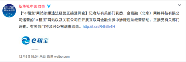 但就在昨天晚上,老大哥新華社發(fā)話了,證明“e租寶網(wǎng)站以及聯(lián)系關系公司在開展互聯(lián)網(wǎng)金融業(yè)務中涉嫌違法經(jīng)營流動,正接受有關部分調(diào)查。”