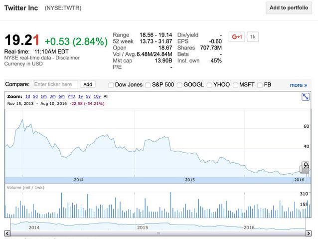 Twitter一直處于虧損狀態(tài),近日有媒體爆料說,它計劃將舊金山總部的1.7萬平方米空間對外轉(zhuǎn)租,算是開源節(jié)流。 與微博每個季度大致都有30%以上的MAU同比增幅比擬,Twitter的用戶活躍度在變差。到了2016年Q2,它的MAU同比增幅進入了負(fù)數(shù)區(qū)。 Twitter常常換CEO,以至于我的朋友開玩笑說,這家公司,已經(jīng)有了一股雅虎的氣質(zhì)。 這是為什么? 四 Twitter長期利潤為負(fù),我發(fā)現(xiàn)了一個小小的原因:它的開支,與微博比擬,有過高之感。 研發(fā)用度和銷售、治理及行政用度這兩項,在Twitter和微博的收益表里,都是重要的開支。