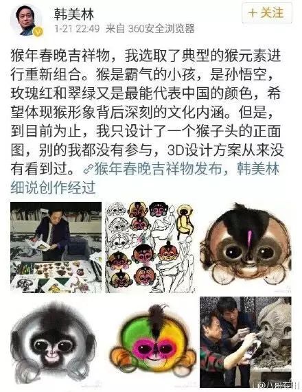 好吧,晚間終于等來(lái)了設(shè)計(jì)師的回應(yīng):那竟然是猴子在吃過(guò)東西后兩腮鼓起的狀態(tài),這也太抽象了吧。 設(shè)計(jì)者韓美林也表示,關(guān)于“康康”兩腮上那兩個(gè)球,春晚節(jié)目組也曾經(jīng)質(zhì)疑過(guò),然而他堅(jiān)持留存。 他解釋說(shuō),小猴子吃東西吃到良多的時(shí)候,腮幫子就會(huì)呈現(xiàn)出鼓鼓的樣子,而這兩個(gè)球就為了體現(xiàn)這種效果。 不可否認(rèn)很多關(guān)于猴子的藝術(shù)品上也會(huì)專門做這樣的設(shè)計(jì),但是對(duì)于愛美、愛萌的大眾來(lái)說(shuō)好像仍是表示無(wú)法理解。 疑問(wèn)二:九頭身? 下面是對(duì)康康的先容: