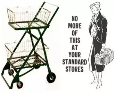 Goldman,猶太移民(沒錯(cuò),又是猶太人)。 1930年氟利昂被研制出來,從此之后冷柜開始大范圍傳播。到20世紀(jì)30年代末,美國一半以上的家庭用上了冰箱。這樣一來,消費(fèi)者購物的時(shí)候,不止買當(dāng)天吃的東西,可以一次性買更多的商品。 于是題目來了:在那個(gè)時(shí)候,自助超市只提供一個(gè)金屬絲織成的籃子。假如家庭主婦覺得拎著的東西太重,他們就自動(dòng)減少購買欲望。 Goldman開始意識(shí)到,商人面臨的題目,恰是顧客的痛點(diǎn),為了銷售更多商品,他必需找到讓顧客更省力的購物方式。 Goldman發(fā)現(xiàn)了一個(gè)大痛點(diǎn)。 當(dāng)時(shí)的解決方案是這樣的:當(dāng)?shù)陠T看到顧客一個(gè)籃子滿了之后,會(huì)幫顧客送到收銀臺(tái),然后給他們一個(gè)空的籃子。事實(shí)證實(shí),這種做法有點(diǎn)太過復(fù)雜了。 930年氟利昂被研制出來,從此之后冷柜開始大范圍傳播。到20世紀(jì)30年代末,美國一半以上的家庭用上了冰箱。 這樣一來,消費(fèi)者購物的時(shí)候,不止買當(dāng)天吃的東西,可以一次性買更多的商品。 于是題目來了:在那個(gè)時(shí)候,自助超市只提供一個(gè)金屬絲織成的籃子。 假如家庭主婦覺得拎著的東西太重,他們就自動(dòng)減少購買欲望。Goldman在1970年回憶說,假如我們能讓主婦拎著兩個(gè)籃子購物,還能騰出一只手來挑選商品,我們的生意就能做的更大。 Goldman開始意識(shí)到,商人面臨的題目,恰是顧客的痛點(diǎn),為了銷售更多商品,他必需找到讓顧客更省力的購物方式。 Goldman發(fā)現(xiàn)了一個(gè)大痛點(diǎn)。 當(dāng)時(shí)的解決方案是這樣的:當(dāng)?shù)陠T看到顧客一個(gè)籃子滿了之后,會(huì)幫顧客送到收銀臺(tái),然后給他們一個(gè)空的籃子。事實(shí)證實(shí),這種做法有點(diǎn)太過復(fù)雜。