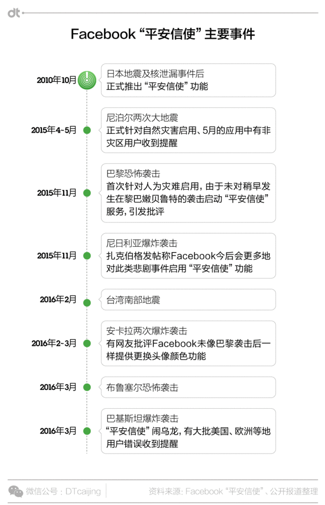 (圖片來源:Facebook平安信使頁(yè)面) “平安信使”已經(jīng)推出了若干次盡管“平安信使”從推出到現(xiàn)在發(fā)生了一些烏龍,還由于這個(gè)功能涉及到定位追蹤和個(gè)人隱私的保護(hù),也引發(fā)多次爭(zhēng)議。 不外這項(xiàng)服務(wù)的推出仍舊受到了良多歡迎,并且為實(shí)際救援提供了作用。 Facebook是第一個(gè)在大型災(zāi)害事故上系統(tǒng)推出報(bào)平安服務(wù)的社交媒體。災(zāi)害事件發(fā)生的時(shí)候,通信常常不暢,受影響地區(qū)的用戶會(huì)接收到大量的和災(zāi)害相關(guān)的信息以及親朋摯友的關(guān)心,傳統(tǒng)的通信方式效率低下,而龐大的社交網(wǎng)絡(luò)則是提供這一公共服務(wù)的最佳平臺(tái)。同時(shí),你也可以看到自己摯友的報(bào)平安狀態(tài),以確定他們所處的情況。 這一功能最初是受日本地震及核泄漏事件啟發(fā),起初只是針對(duì)天然劫難。而去年巴黎恐怖襲擊后,F(xiàn)acebook首次針對(duì)人為災(zāi)害啟用平安信使,據(jù)Facebook自己公然的數(shù)據(jù),410萬用戶在巴黎襲擊后24小時(shí)內(nèi)匯報(bào)了平安,占了巴黎總?cè)丝诘慕种。這些報(bào)平安的帖子經(jīng)由大量傳播,終極看過報(bào)平安狀態(tài)的用戶數(shù)達(dá)到3.6億之多。