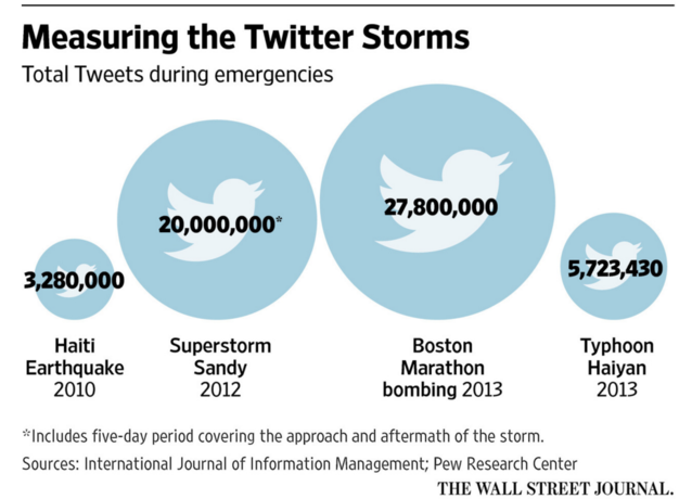 災(zāi)害發(fā)生后,社交媒體都步履了起來實(shí)在不僅是Facebook的平安信使功能,跟著社交媒體不斷滲透滲出進(jìn)我們糊口的方方面面,人們對(duì)社交媒體的依靠加強(qiáng),各類社交媒體在災(zāi)害應(yīng)急上的角色越發(fā)重要。 美國(guó)政府在幾回颶風(fēng)劫難后,對(duì)社交媒體越發(fā)正視。早在2010年,美國(guó)紅十字會(huì)的一份調(diào)查就顯示: 當(dāng)911報(bào)警電話無法買通時(shí),1/5的受訪者會(huì)通過社交媒體、電郵等方式聯(lián)系救援職員;假如網(wǎng)民得知其他人需要匡助,他們中的44%會(huì)在社交媒體平臺(tái)上哀求他人幫忙,35%會(huì)在官方Facebook頁(yè)面發(fā)帖求助,28%的人會(huì)私信官方推特。 相關(guān)比例如今很可能已增長(zhǎng)的更高。跟著人們對(duì)社交媒體越發(fā)依靠,對(duì)這些網(wǎng)絡(luò)平臺(tái)的信任度在不斷晉升。當(dāng)危機(jī)發(fā)生時(shí),越來越多的人第一時(shí)間會(huì)在社交網(wǎng)絡(luò)發(fā)布動(dòng)靜,并依賴社交網(wǎng)絡(luò)跟蹤事態(tài)進(jìn)展。 美國(guó)聯(lián)邦應(yīng)急治理機(jī)構(gòu)稱,在2012年的颶風(fēng)桑迪登陸期間,民眾發(fā)出的超過2千萬條推特,很多是在颶風(fēng)最高峰時(shí)手機(jī)通信服務(wù)間斷的情況下發(fā)出的。而數(shù)據(jù)也顯示,在多次天然劫難中,推特用戶十分活躍。