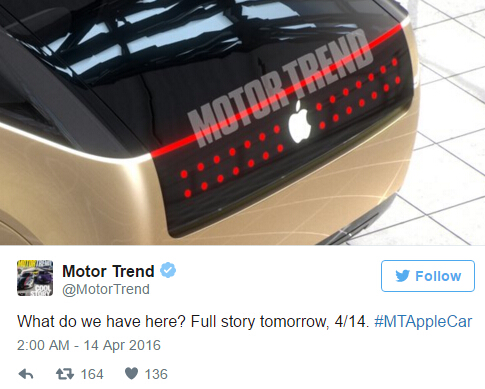 目前有4種推測: 1.蘋果公司有可能在近一年的時間內(nèi)設計出來智能汽車的外觀,Motor Trend雜志是咨詢加州帕薩迪納ArtCenter的設計師,由于蘋果公司也在這一區(qū)域,并且也是ArtCenter學院的客戶,所以有人推測這些概念圖有可能接近Apple Car的設計理念。 2.特斯拉的Model 3提前一年半發(fā)布和預售,量產(chǎn)并投遞預售用戶手中需要2-3年的時間,蘋果公司也可能采取類似的模式,這樣就需要在一年內(nèi)也要有Apple Car初步的設計宣布出來,搶奪所剩無幾的智能電動車用戶,所以很大概率蘋果公司會出頭具名回應。不外蘋果公司一直是吊著用戶預期的高手,也可能會再配合媒體炒作幾輪再宣布Apple Car的真面目。 3.間隔蘋果公司發(fā)布新一季的財報又不遠了,不同于圣誕假期的銷售旺季,蘋果公司本來就在財報預期2016第二財季iPhone的銷售會泛起多年來的第一次下滑,蘋果公司會面對華爾街的又一次看空,所以需要用Project Titan出來維持市場對于蘋果未來盈利能力的預期。 4.這些概念圖是Motor Trend雜志憑空的設想,就是為了宣傳雜志,吸引更多訂戶。