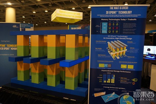 這是在IDF科再奇主題演講時最后收場的蜘蛛機器人群舞!在今年4月的深圳IDF上,其就展示了用基于Curie的手環(huán)控制一群蜘蛛機器人。如今的這群蜘蛛機器人是進級版,甚至帶來了一個“母后”——其后頭部是基于RealSense的實感攝像頭,身體內(nèi)部是迷你電腦。 當然,這套黑科技并沒有什么卵用,主要展示實感的可用性,激發(fā)開發(fā)者創(chuàng)意?圃倨娣Q,自己不以為蜘蛛機器人會帶下世界末日。 再來看一些技術(shù)控的新玩意: 1. 3D XPoint內(nèi)存技術(shù)