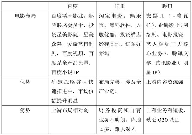 百度:快速進擊拆開來說,百度今年對片子行業(yè)的投入力度是BAT中最大的,這與百度200億轉型O2O的團體戰(zhàn)略息息相關。 2015年,百度糯米影業(yè)幾件重要事情是,投資星美院線,推出影院聯(lián)名會員卡,上線超級影院商城,與星美合作眾籌新影院,推出“實時票房、用戶畫像、搜索指數(shù)、口碑輿情”大數(shù)據(jù)產品,除了百度糯米產品支持之外,百度手機搜索、百度輿圖四周都對片子流量完全放開,另外結合鼎力度的院線線下推廣。 這些聽起來簡樸,實在背后是百度內部資源的大整合,包括流量、技術,以及從戰(zhàn)略到執(zhí)行的快速推動力。 利用從淺到深的原理,百度糯米影業(yè)今年以會員+帶動銷售,弱化團購,而是用虛擬會員卡的方式跟二十來個品牌院線合作,籠蓋了超過80%的票房來源地。用大數(shù)據(jù)產品以及高價值流量,來取得跟院線的深度合作,用市場推廣進行線下YIN流。 百度糯米影業(yè)正在從下往上入侵片子行業(yè)工業(yè)鏈,從銷售切入去深入院線,影響發(fā)行,用優(yōu)質流量為院線以及單獨的片子提供宣發(fā)服務,下一步應該就是制片,以及再上游的IP培育了。 百度糯米影業(yè)現(xiàn)在要不要做影片的制作發(fā)行暫時不可知,不外愛奇藝自制劇能力不錯。而百度小說也可以成為IP起源地。跟著在片子行業(yè)的深入滲透滲出,這些提上日程也只是遲早的事情。 總體來說,百度糯米影業(yè)在片子行業(yè)也屬于后來者,但最大的上風是百度全力以赴快速進擊,這是百度與阿里、騰訊最不一樣的地方。也恰是如斯,百度在這場爭斗中,應該有更多勝算。 阿里:買買買阿里在片子行業(yè)中的布局用三個字可以形容“買買買”。從博納到粵科,從橫店到好萊塢,都留下阿里金主的身影。 博納是籠蓋片子制作、發(fā)行、廣告、藝人經(jīng)紀多方位一體的全工業(yè)鏈公司,而粵科軟件公司,是院線系統(tǒng)“火鳳凰”制作商。之前在線選座的介入者,以能與火鳳凰直接交換數(shù)據(jù)為榮。否則就只能從第三方接入“二手數(shù)據(jù)”。 阿里巴巴與浙江橫店成立影視公司,要主攻未來的高科技大片兒。另外還公布要進軍好萊塢,把國際上的好片子引入中國。在自有產品支持上,除了淘寶片子之外,還有理財產品娛樂寶。 這種大開大合的布局,真是讓人費解。這意味著,要么很厲害,像圍棋巨匠,看似閑子,最后卻連成殺局。要么只是在做財務投資,只是看起來很戰(zhàn)略而已,實在未必須要買通。 恕作者駑鈍,比較偏向后者,究竟阿里巴巴也不是萬能的,來往、口碑都沒太做好,淘寶片子砸下巨額補貼,今年進展也一般般。另外在阿里整體布局中,本地糊口一直是高舉輕打,不落實處,不知片子會不會意外? 騰訊:松耦合的方陣騰訊系孵化了一個微票兒,把格瓦拉合并了。這種高維攻擊低維的方式,應該頗讓創(chuàng)業(yè)者心寒吧。 騰訊之強,微信之勢已經(jīng)不需要贅述。但是,騰訊系在片子行業(yè)的布局是強者松耦合的狀態(tài)。旗下有騰訊影業(yè)和企鵝影業(yè),內部有整合了格瓦拉的微票兒團隊。 騰訊影業(yè)側重于發(fā)掘與聯(lián)動內外部在文學、動漫、游戲等多個泛娛樂領域的明星IP,核心是打造更廣泛影響力與更多貿易價值的明星IP,而企業(yè)影業(yè)將在網(wǎng)絡劇、片子投資、藝人經(jīng)紀三大核心業(yè)務上發(fā)力。 騰訊影業(yè)、企鵝影業(yè)乃至合并了格瓦拉之后的微票兒,單獨拎出來都還尚可。但對于片子行業(yè)的全整合來說,彼此之間的間隙大了點兒。 好比,影業(yè)培育的IP到片子制作,本身還有間隔,而有了片子之后,才能到發(fā)行、銷售推廣。另外,即使微信擁有龐大的流量,但是微票兒在銷售的同時,也不能給到某一個單獨的影片以推廣資源。 所以這個耦合的方陣本身也存在良多無法銜接的區(qū)間,當然,跟著時間推移,這些空缺都可以被填補,但在能不能做和想不想做,以及做不做得成之間,又會多出良多變數(shù)。 所以說,2016年互聯(lián)網(wǎng)入侵片子行業(yè)很可能泛起垂直產品被生態(tài)打壓的變局。幾年前,格瓦拉曾經(jīng)占據(jù)華東區(qū)在線選座超過70%的份額,但是卻被團購起家的貓眼片子截胡,2016年,垂直深入的貓眼則可能被BAT壓制,百度生態(tài)支持下的百度糯米片子,是最有望沖擊市場領先地位的。阿里和騰訊要鋪的面兒都太大了,收成期還得靠后。 年末將至,各家賀歲檔、春節(jié)檔從宣傳到銷售,又在爭得人仰馬翻。再過2個月,就會有新的銷售數(shù)據(jù)和排名了。 |