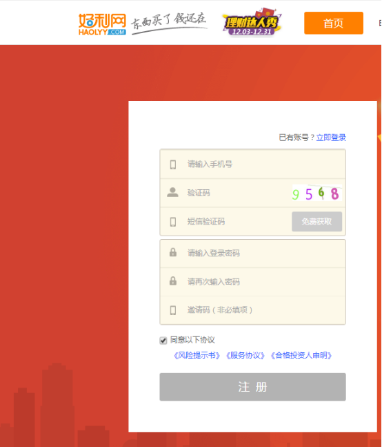 如下圖好利網(wǎng)注冊(cè)頁(yè)面,需要用戶輸入兩遍密碼,以及邀請(qǐng)碼,邀請(qǐng)碼對(duì)于邀請(qǐng)人來(lái)說(shuō)有一定的優(yōu)惠補(bǔ)償(類似于推廣獎(jiǎng)勵(lì)),所以將其作為選填放在注冊(cè)頁(yè)面。