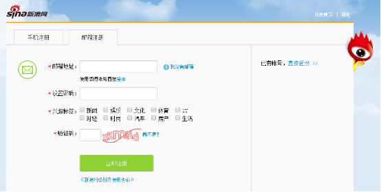 如下圖新浪網(wǎng),注冊(cè)時(shí)需勾選自己的愛好標(biāo)簽。