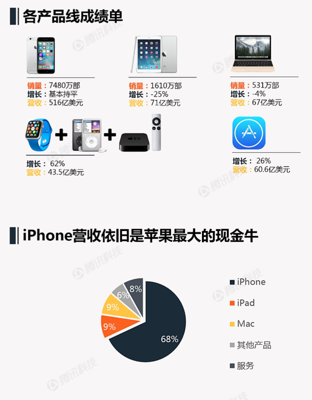 (注:配圖來自騰訊科技) 固然蘋果在2015年推出了Apple Watch以及iPad Pro等全新產(chǎn)品,但iPhone營收依舊是蘋果最大的現(xiàn)金牛。其中iPhone所占比重為68%,iPad和Mac比重分別都是9%。其中,iPhone的營收為516億元,與去年基本持平。而iPad和Mac營收分別為71億美元和67億美元。營收分別下降了25%和4%。 在營收結(jié)構(gòu)中,Apple Watch、iPod、Apple TV等周邊設(shè)備以及Apple Store的軟件服務(wù)營收獲為了最大的亮點(diǎn)。根據(jù)蘋果電話會(huì)議內(nèi)容顯示,Apple Store第一財(cái)季營收同比增長了27%,應(yīng)用商店的用戶數(shù)目同比增長了18%。 當(dāng)然,Apple Watch、iPod、Apple TV等周邊設(shè)備不會(huì)成為蘋果的營收支柱,更不會(huì)是蘋果未來的長期現(xiàn)金牛。蘋果的想在營收層面和業(yè)務(wù)層面上跨上一個(gè)新的臺階可能仍是要新的產(chǎn)品線的開拓。未來蘋果業(yè)務(wù)線的拓展可能會(huì)有這兩個(gè)方向: 一是虛擬現(xiàn)實(shí)。市道市情上最火的三大虛擬VR設(shè)備公司Oculus、HTC VIVE、索尼都在推出頭具名向消費(fèi)者的平價(jià)VR產(chǎn)品,價(jià)格都在3000元—6000元不等,基本處于普通消費(fèi)者可接受的水準(zhǔn)。有業(yè)內(nèi)分析人士以為,誰能掌握這次虛擬VR的風(fēng)潮,誰就有可能把握5—10年后的流量分發(fā)權(quán),甚至成為下一個(gè)蘋果,賺得百億市場,改變?nèi)祟惡诜绞健LO果作為科技領(lǐng)域的領(lǐng)頭羊必定不會(huì)放過這一機(jī)會(huì)。 2015年5月,蘋果就收購了虛擬現(xiàn)實(shí)初創(chuàng)公司Metaio。這恰是蘋果進(jìn)軍虛擬現(xiàn)實(shí)領(lǐng)域的第一步。外媒通過蘋果公司的一些專利文件發(fā)現(xiàn),這家公司已經(jīng)開始為iOS設(shè)備打造視頻頭套、動(dòng)作感應(yīng)虛擬3D界面,以及“超現(xiàn)實(shí)”3D顯示屏。此次電話會(huì)議中,庫克也暗示他非?春眠@一技術(shù),“我不以為它是小眾技術(shù)。我以為虛擬現(xiàn)實(shí)技術(shù)會(huì)變得非?,會(huì)擁有一些有趣的應(yīng)用。”蘋果近期禮聘了虛擬現(xiàn)實(shí)專家道格·鮑曼(Doug Bowman)。 二是電動(dòng)汽車。蘋果收購特斯拉的傳說傳聞?dòng)蓙硪丫,甚至已?jīng)成為了每年愚人節(jié)必上的戲碼,但這在某種程度上也證實(shí)了業(yè)內(nèi)對于蘋果電動(dòng)汽車的期待。2015年,庫克在面臨媒體采訪時(shí)就曾表示,一系列技術(shù)變化接踵到位,為局外人進(jìn)入這一行業(yè)提供了罕見的機(jī)遇。根據(jù)目前的傳說傳聞,蘋果汽車早在2014年左右就已經(jīng)立項(xiàng),此后蘋果不斷從傳統(tǒng)汽車廠商乃至是特斯拉挖角員工,業(yè)內(nèi)分析人士稱,蘋果汽車可能將在2019年面世。屆時(shí),蘋果汽車將為蘋果的營收結(jié)構(gòu)加上濃墨重彩的一筆。 寫在最后:盛世之下必有隱憂。在智能手機(jī)發(fā)展普遍乏力的今天,蘋果的困境不僅僅是蘋果的困境,更是所有終端廠商的困境。提早轉(zhuǎn)型涉足新業(yè)務(wù),展開新布局,這將會(huì)是廠商們最智慧的選擇。跟著物聯(lián)網(wǎng)和5G wifi技術(shù)的持續(xù)提高,蘋果未來在虛擬現(xiàn)實(shí)和智能汽車等領(lǐng)域可能還會(huì)給世界驚喜。 |