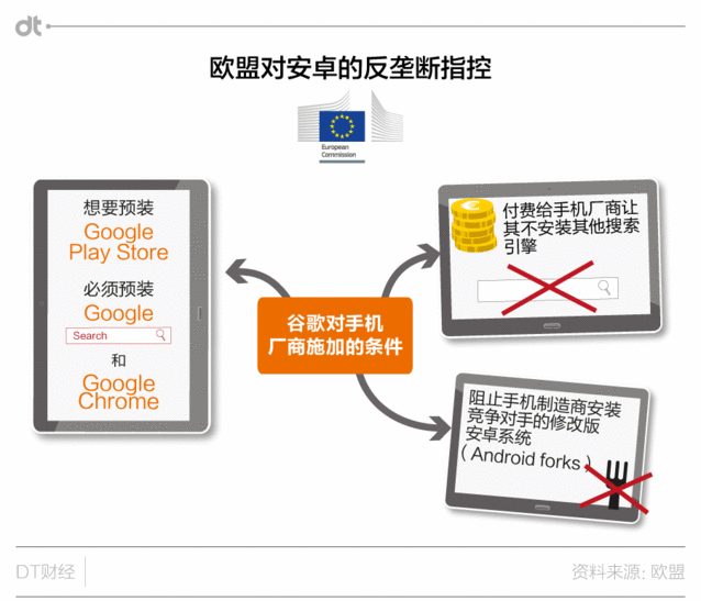 實(shí)在,一開(kāi)始?xì)W盟成立調(diào)查組,就是為了避免案件像此前的微軟反壟斷案一樣,一拖就是十多年。歐盟起初但愿可以快速找到證據(jù),對(duì)谷歌進(jìn)行懲罰。但事到如今回頭看,歐盟顯然沒(méi)能實(shí)現(xiàn)愿望,如今案件也拖了近六年,而且終極仍是要靠正式訴訟來(lái)終結(jié)糾紛。 《逐日電訊報(bào)》的報(bào)道中,也引述分析人士稱,在多年的糾纏之后,谷歌已經(jīng)不想再繼承耗費(fèi)精力財(cái)力,也打算接受罰款終止案件。 歐盟放大招,歷數(shù)谷歌安卓系統(tǒng)的三大罪狀 那么歐盟這30億的罰款,畢竟是因?yàn)楣雀璧氖裁醋餇钅兀?/p>