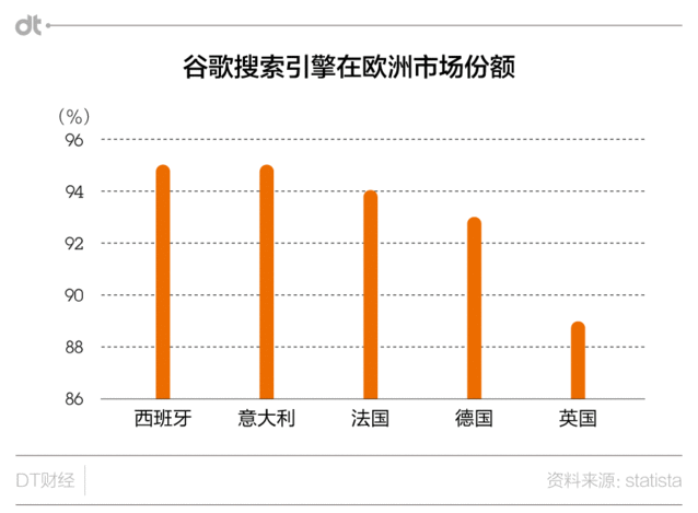 有美國(guó)媒體的評(píng)論就以為,谷歌是遭到了歐盟的政治報(bào)復(fù)。在訴訟的最后終于正式將矛頭對(duì)準(zhǔn)安卓,絕對(duì)算得上是歐盟放出的一個(gè)大招。 安卓以及預(yù)裝谷歌搜索等應(yīng)用,是谷歌現(xiàn)在在移動(dòng)領(lǐng)域運(yùn)營(yíng)的基本模式,而歐盟市場(chǎng)對(duì)谷歌又十分重要,此次帶來(lái)的打擊注定不小,甚至有分析以為將改變谷歌的盈利模式。 還操作搜索結(jié)果?你居然是這樣的谷歌…… 實(shí)際上,在重點(diǎn)轉(zhuǎn)向安卓之前,歐盟一直抨擊的是谷歌的購(gòu)物比價(jià)以及旅游等產(chǎn)品。歐盟指控谷歌濫用其搜索引擎的市場(chǎng)主導(dǎo)地位,將自己的產(chǎn)品排列在其他產(chǎn)品之前。(DT君也嚇了一跳:這個(gè)和百度被千夫所指的競(jìng)價(jià)排名有關(guān)系嗎?真不知道,你居然是這樣的谷歌……) 先別急,我們來(lái)看一下在歐盟各主要國(guó)家,谷歌在搜索引擎市場(chǎng)的占比普遍都超過(guò)了九成: