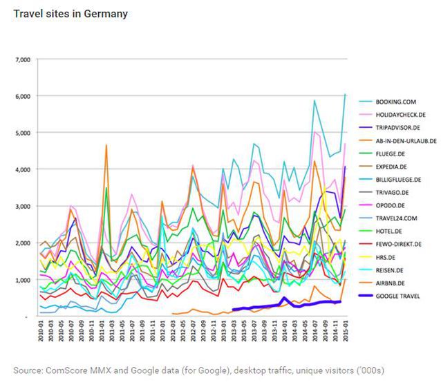 歐盟指責(zé)谷歌人工干涉干與了搜索結(jié)果,不外這里要提醒大家的是,DT君經(jīng)由調(diào)查發(fā)現(xiàn),谷歌受到的指控并不是類似百度這樣的販賣廣告位等,而是將自己的一些產(chǎn)品排在了更優(yōu)先的位置。這些被指控的產(chǎn)品,也都不是最核心的產(chǎn)品,好比Google Travel、Google Shopping等。 谷歌在遭到指控后作出回應(yīng),不無(wú)委屈地曬出這些產(chǎn)品在一些歐盟國(guó)家可憐的市場(chǎng)份額。谷歌表示,旅行搜索是一個(gè)競(jìng)爭(zhēng)激烈的垂直市場(chǎng),而自己的據(jù)有率實(shí)在少得可憐。