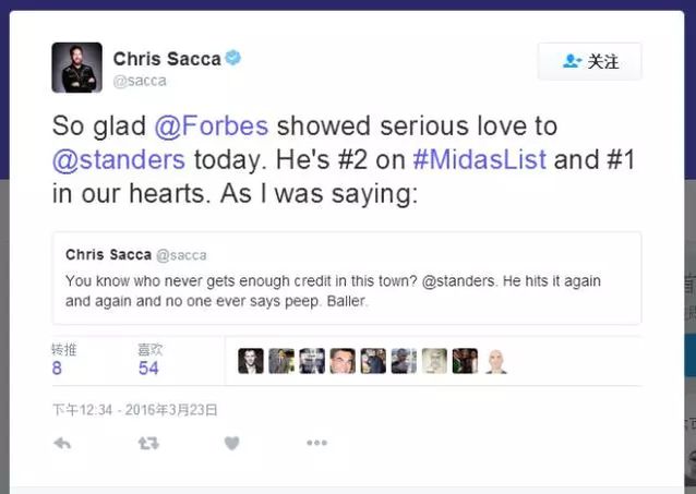 (福布斯宣布2016年最佳創(chuàng)投人排行榜的時候,Chris Sacca在twitter上對Steve Anderson表達(dá)了自己的敬(ai)意(yi) ,嘿嘿嘿) 牽線twitter和Anderson的是Baseline Ventures曾經(jīng)的合伙人Ron Conway。Conway是Anderson在凱鵬華盈時期的良師,他的到來不僅給Baseline Ventures引來了充足的資金,同時和twitter的合作也改變了Baseline Ventures的命運(yùn)(翻譯:就是因此賺了良多錢的意思)。 然而,Conway和Anderson的合作并沒有持續(xù)多久。當(dāng)時Conway十分看好社交媒體,想要一次性投資一堆羽翼未豐的社交媒體創(chuàng)業(yè)公司。而Anderson以往的做法是,只選擇他以為有價值的公司,然后砸錢,一年投的項目,不會超過十個。 Conway由于無法忍受這種龜速的投資狀態(tài),終極離開了Baseline。
