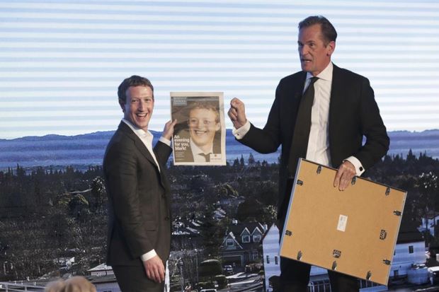【圖說:2月25日晚的阿克塞爾·施普林格獎頒獎儀式上沒有獎杯,獎狀或者獎金,但有一樣十分特殊的禮物。一份由柏林最大的報紙B Z 和Busines