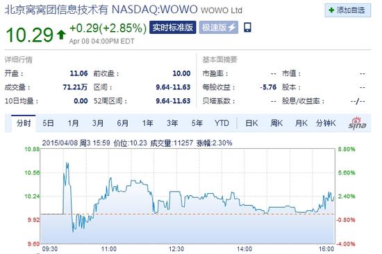 新浪科技訊 北京時間4月9日凌晨動靜,窩窩團(tuán)在美國納斯達(dá)克全球市場成功掛牌交易,股票代碼為WOWO,發(fā)行價為每股ADS 10美元,每股ADS