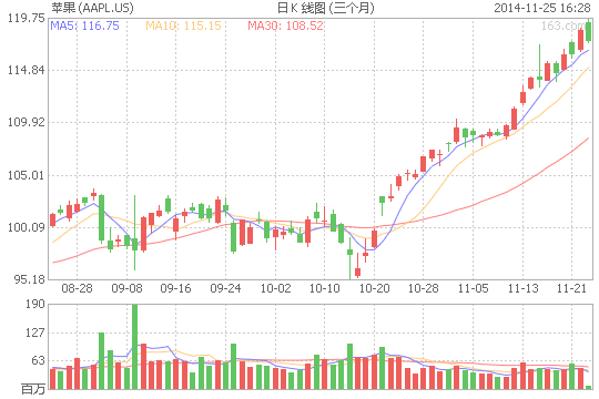 作為世界上股票市值最高的公司,蘋(píng)果的市值今天突破了7000億美元,再創(chuàng)歷史新高。蘋(píng)果估價(jià)在周二美股開(kāi)盤(pán)后上升0 8%至119 59美元,市值7010