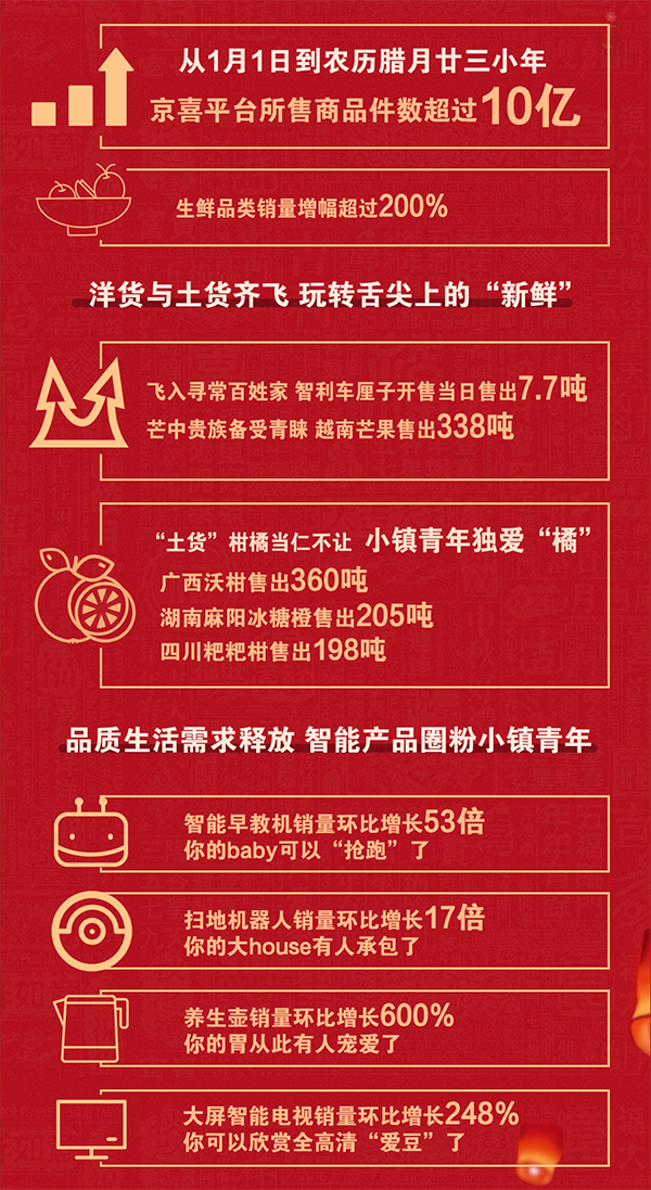 年味漸濃,我們的年貨都準(zhǔn)備的怎么樣了?京喜發(fā)布了2020年貨節(jié)期間的數(shù)據(jù):1月1日至1月17日小年期間,京喜渠道累計(jì)出售產(chǎn)品件數(shù)超過10億:作為年貨剛需品的生鮮品類銷量增幅環(huán)比超過200%,