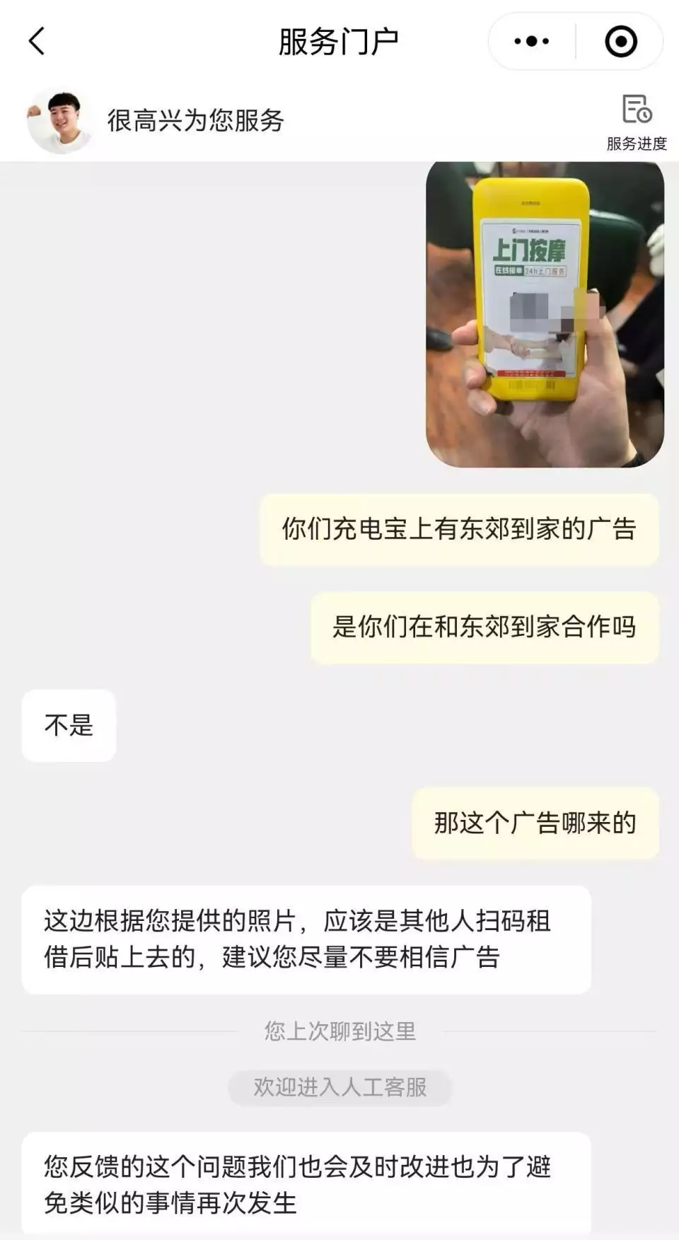2024 年 12 月 22 日,武漢市民李曼在楚河漢街某餐飲店租用美團共享充電寶時,發(fā)現(xiàn)充電寶上粘貼有 “東郊到家上門按摩” 的廣告. 以下是關于該事件的詳細介紹: