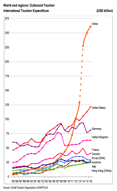 據(jù)統(tǒng)計(jì),2016年我國(guó)出境花費(fèi)到達(dá)2900億美元,居國(guó)際之首。我國(guó)以4%的護(hù)照持有率,變成全球出境花費(fèi)額最高的國(guó)家。在將來五到十年內(nèi),跟