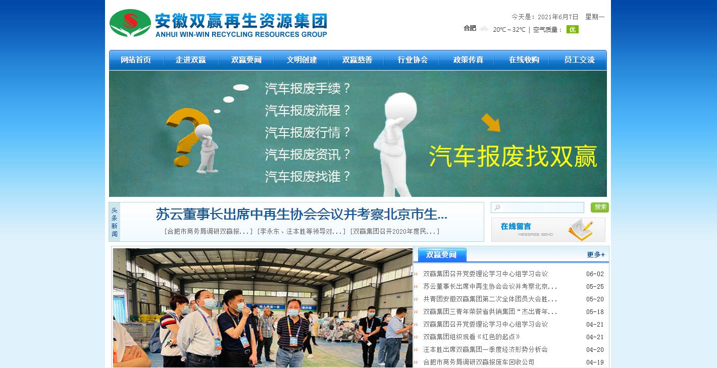 安徽雙贏再生資源集團(tuán)(簡稱安徽雙贏集團(tuán))由安徽省供銷商業(yè)總公司控股,安徽雙贏再生資源集團(tuán)有限公司為母公司,總注冊(cè)資本15億元,現(xiàn)有總資產(chǎn)169億元。