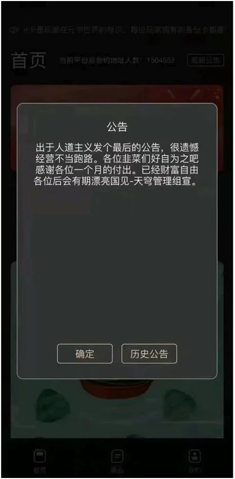 繼加密錢銀LUNA崩盤風(fēng)波后,代幣市場也起波瀾! 6月6日,一張關(guān)于蒼穹元世界數(shù)字藏品渠道跑路的公告在網(wǎng)上撒播。