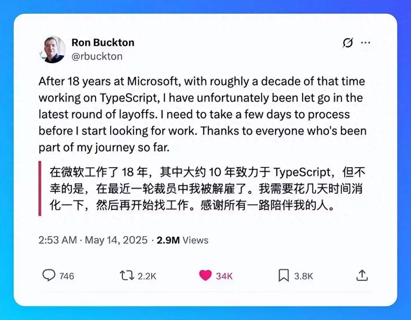 當(dāng)?shù)貢r間5月13日,微軟公司宣布將在全球范圍內(nèi)裁員約6000人,占其22.8萬名員工總數(shù)的約3%。關(guān)于AI是否正在替代程序員的問題,近期微軟裁員事件確實引發(fā)了行業(yè)討論,