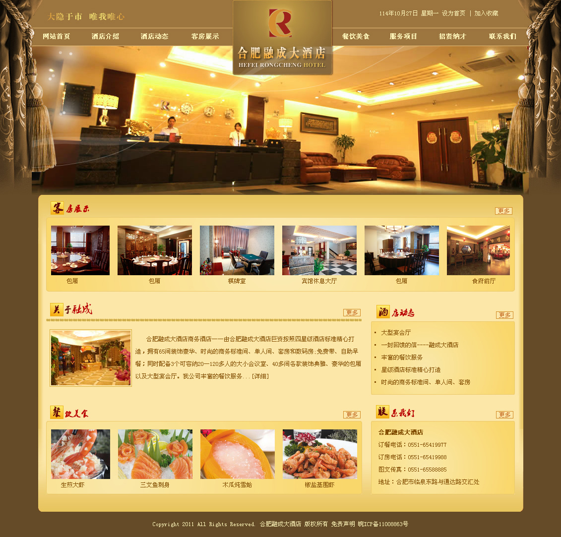 合肥融成大酒店商務酒店——由合肥融成大酒店巨資按照四星級酒店標準精心打造,擁有65間裝飾豪華、時尚的商務標準間、單人間、套房和數(shù)碼房;免費帶、自助早餐;同時配備3個可容納20—120多人的大小會議室、40多間各款裝飾典雅、豪華的包廂以及大型宴會廳。