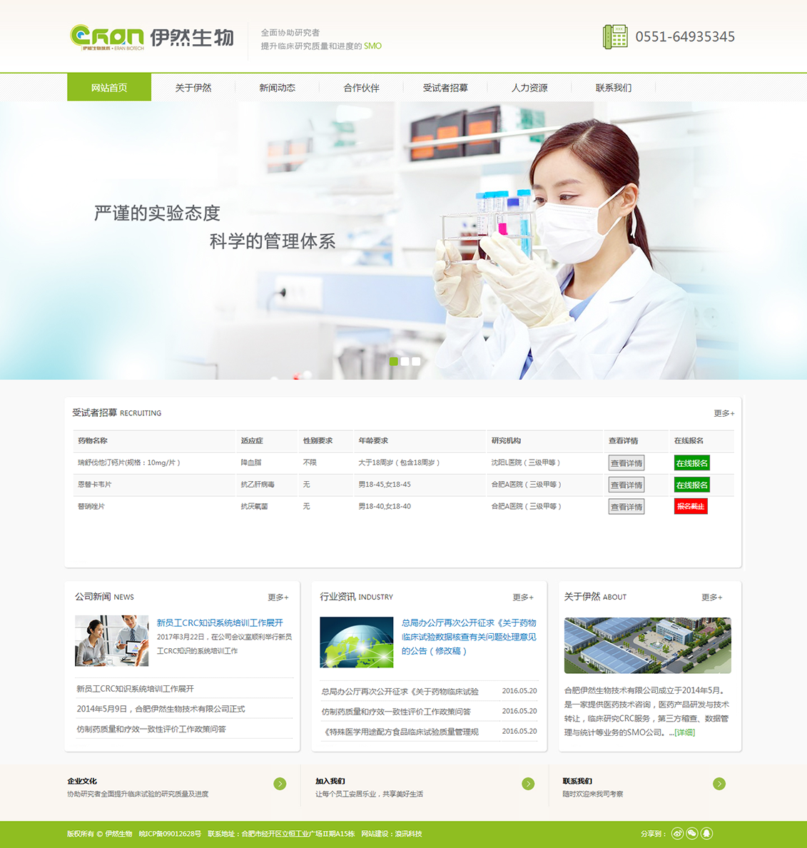 合肥伊然生物技術(shù)有限公司成立于2014年5月。是一家提供醫(yī)藥技術(shù)咨詢,醫(yī)藥產(chǎn)品研發(fā)與技術(shù)轉(zhuǎn)讓,臨床研究CRC服務(wù),第三方稽查、數(shù)據(jù)管理與統(tǒng)計等業(yè)務(wù)的SMO公司。