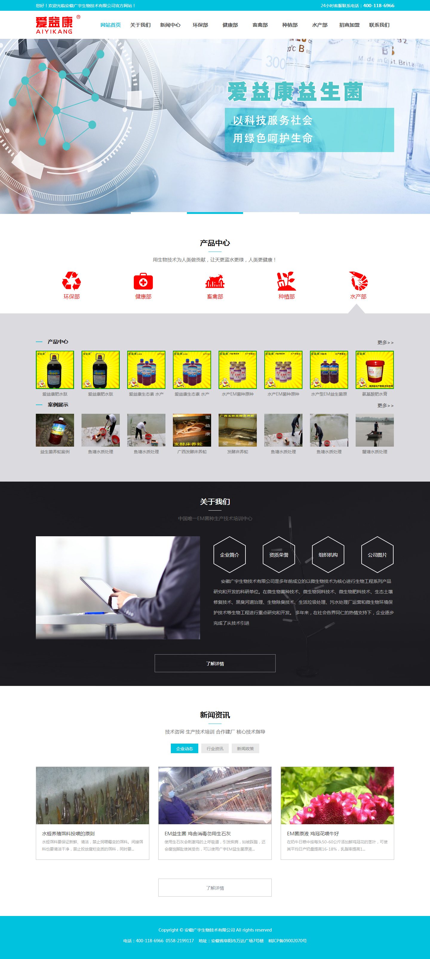 安徽廣宇生物技術(shù)有限公司是多年前成立的以微生物技術(shù)為核心進(jìn)行生物工程系列產(chǎn)品研究和開發(fā)的科研單位。在微生物菌種技術(shù)、微生物飼料技術(shù)、微生物肥料技術(shù)、生態(tài)土壤修復(fù)技術(shù)、黑臭河道治理、生物除臭技術(shù)、生活垃圾處理、污水處理廠運(yùn)營和微生物環(huán)境保護(hù)技術(shù)等生物工程進(jìn)行重點(diǎn)研究和開發(fā)。